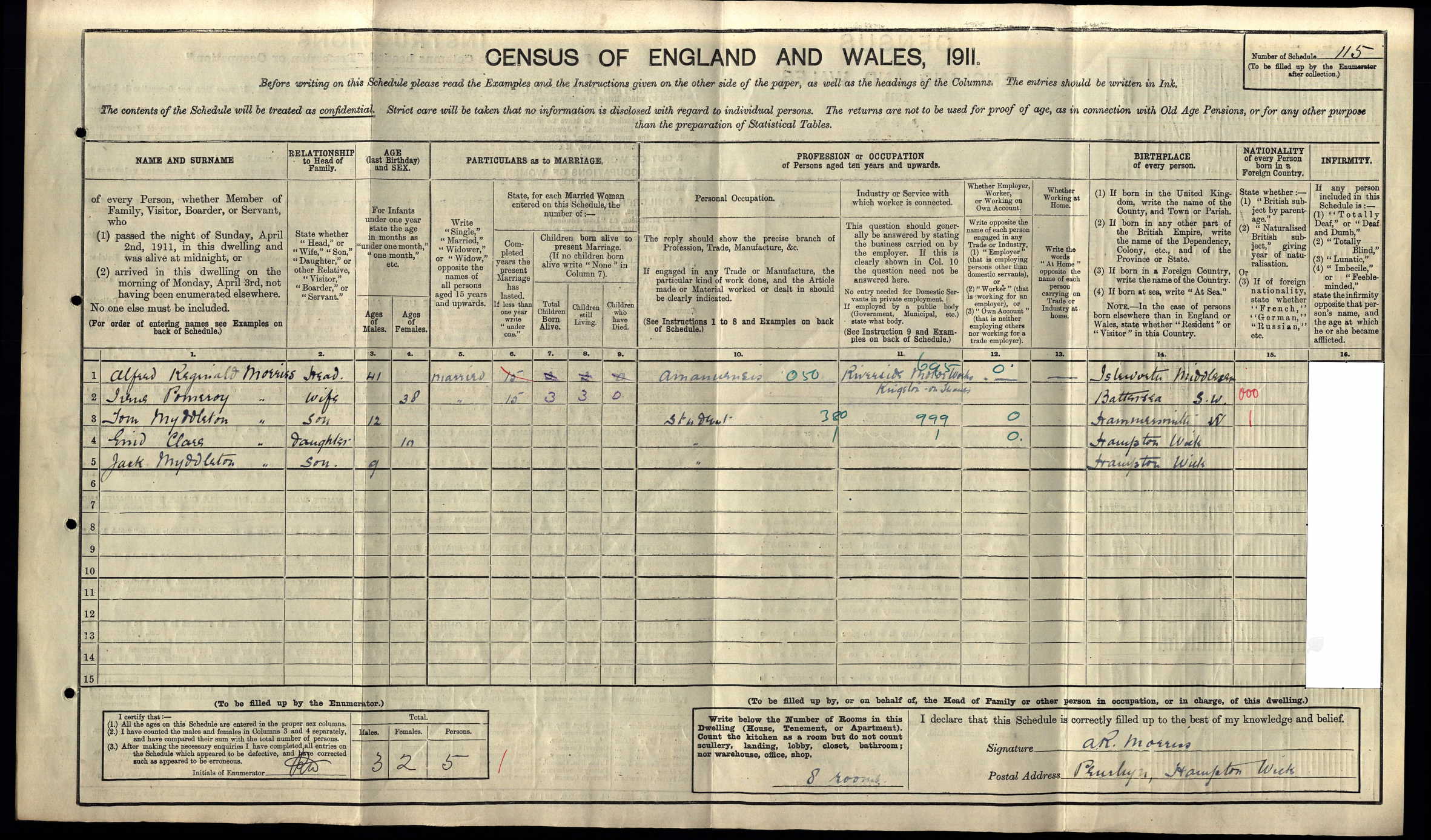 1911 Census Schedule # 115